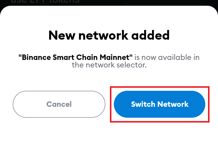 After that, you'll be offered to switch network to BSC. Tap Switch network to continue.