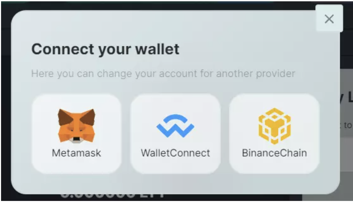 The menu will appear with several wallet options. Choose Metamask or WalletConnect.