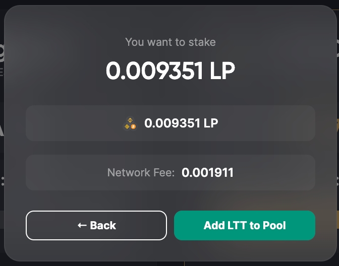 8. Click Add LTT to the Pool. Your wallet will ask you to confirm the action.