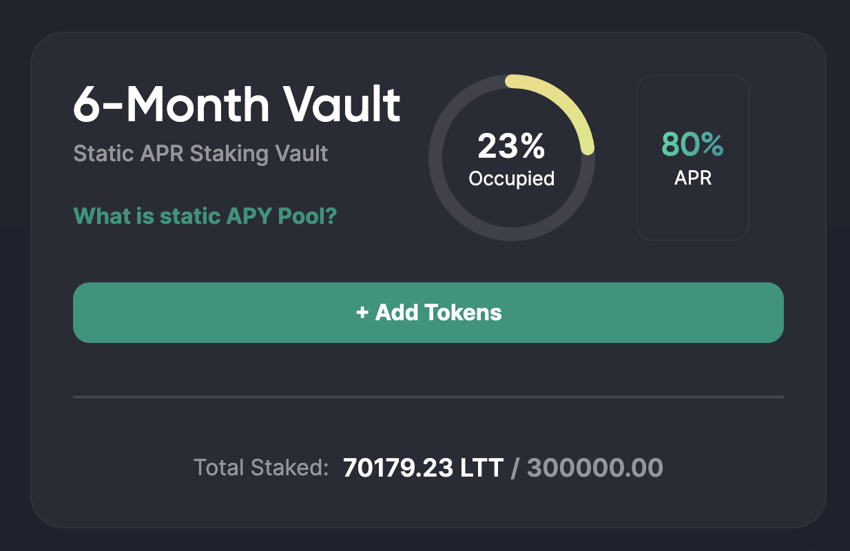 βStaking $LTT in the Vault will positively affect your DAO Tier, and will increase the rewards from DAO Sharing Economy.